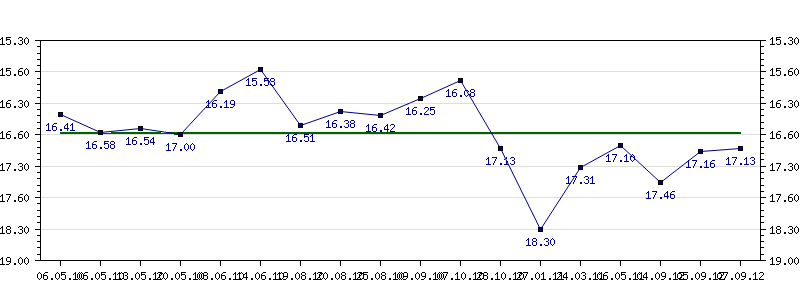 | 19.08.2010 | 16.51 | 20.08.2010 | 16.38 | 25.08.2010 | 16.42 | 09.09.2010 | 16.25 | 07.10.2010 | 16.08 | 28.10.2010 | 17.13 |