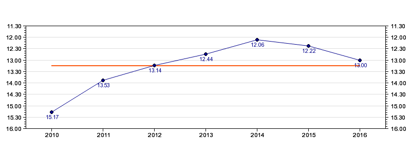 | Forrige tid | 13.00 (2016) |