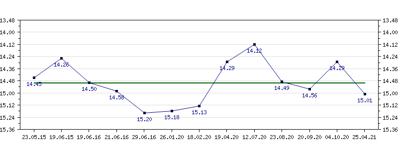 | 23.05.2015 | 14.45 | 19.06.2015 | 14.26 | 19.06.2016 | 14.50 | 21.06.2016 | 14.58 | 29.06.2016 | 15.20 | 26.01.2020 | 15.18 |
