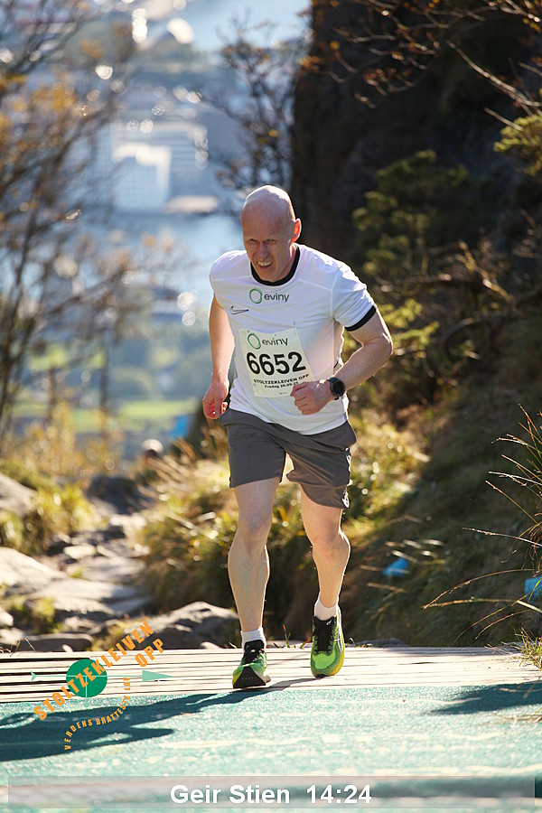 Da Thorbjørn Ludvigsen satte rekord på 7.54 i 2016 hadde han serien 95-99-95-115 og en gjennomsnittlig vertikal hastighet på 2286 meter/time. Kristin Størmer Steira hadde serien 107-96-95-107 da hun satte damerekord på 9:35 i 2013 med en gjennomsnittlig vertikal hastighet på 1884 meter/time. Til sammenligning hadde verdensrekordløpene på en vertikal kilometer (per 1/8/2014) hastighet på henholdsvis 1967 meter/time og 1630 meter/time - men da ble det altså løpt mer enn 3 ganger så langt.