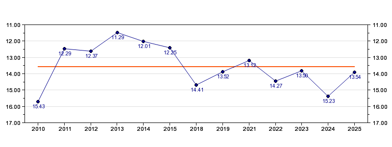 | 2025 | Kalkulator | 13:54 (1301 m/h) | 02:25 (1335 m/h, 102 %) | 06:23 (03:58, 1387 m/h, 106 %) | 12:00 (05:37, 1221 m/h, 93 %) | 13:54 (01:54, 1313 m/h, 100 %) |