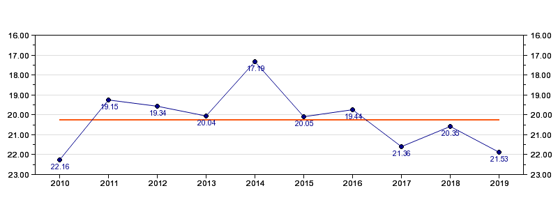 | Forrige tid | 21.53 (2019) |