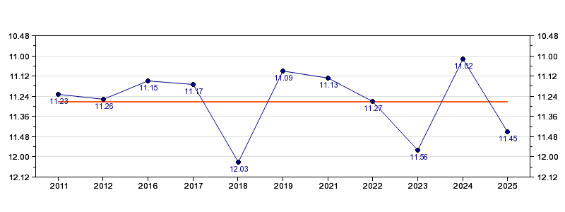 | Antall deltagelser | 11 (i perioden 2011 - 2025) |