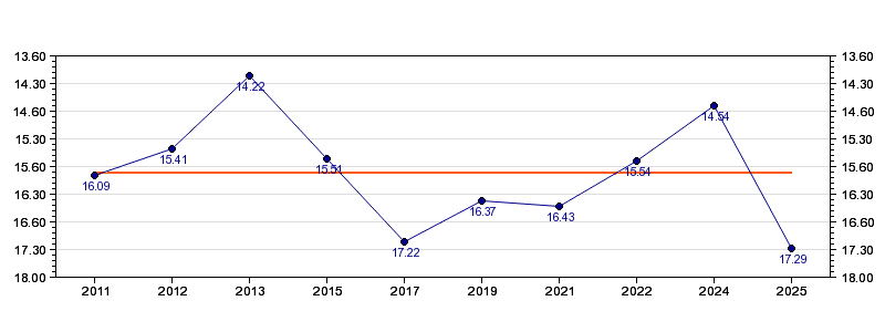 | Antall deltagelser | 10 (i perioden 2011 - 2025) |