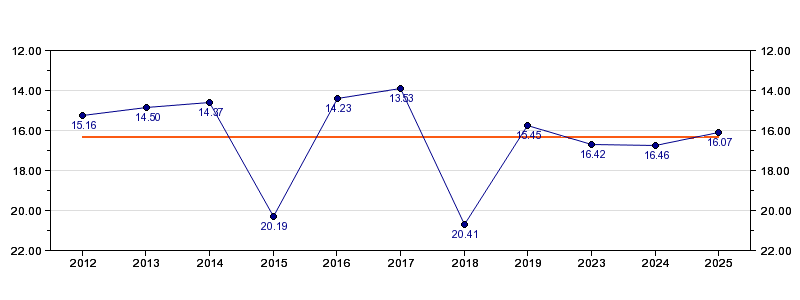 Antall deltagelser11 (i perioden 2012 - 2025)