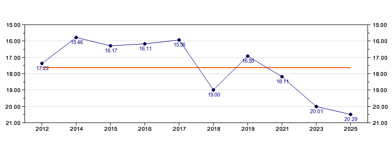 Antall deltagelser10 (i perioden 2012 - 2025)