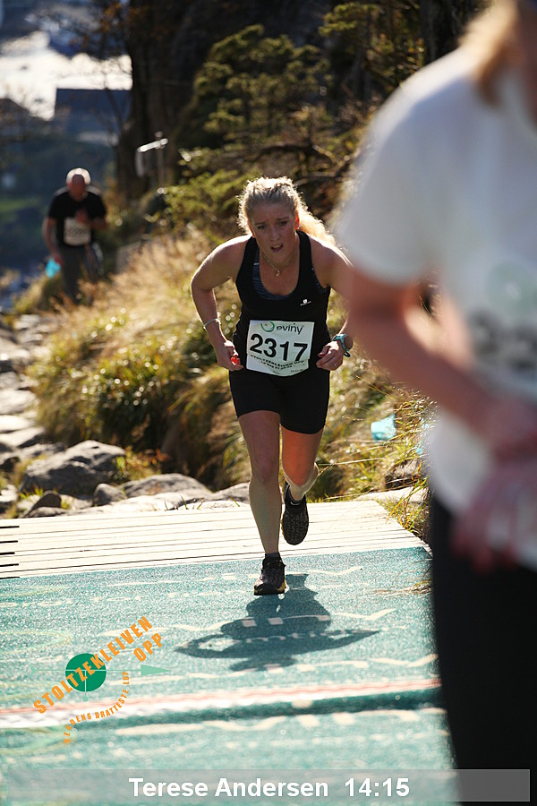 Da Thorbjørn Ludvigsen satte rekord på 7.54 i 2016 hadde han serien 95-99-95-115 og en gjennomsnittlig vertikal hastighet på 2286 meter/time. Kristin Størmer Steira hadde serien 107-96-95-107 da hun satte damerekord på 9:35 i 2013 med en gjennomsnittlig vertikal hastighet på 1884 meter/time. Til sammenligning hadde verdensrekordløpene på en vertikal kilometer (per 1/8/2014) hastighet på henholdsvis 1967 meter/time og 1630 meter/time - men da ble det altså løpt mer enn 3 ganger så langt.