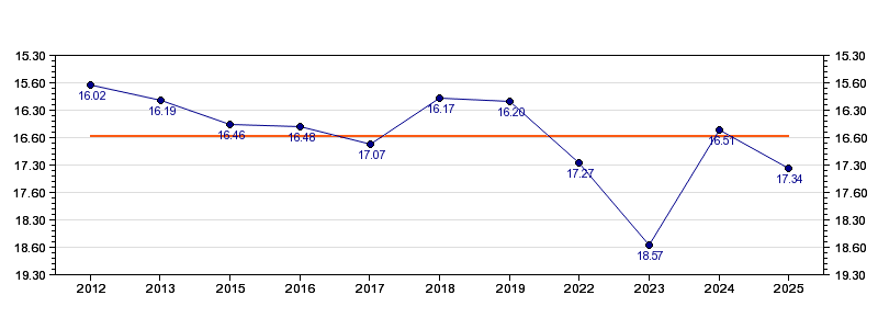 Antall deltagelser11 (i perioden 2012 - 2025)
