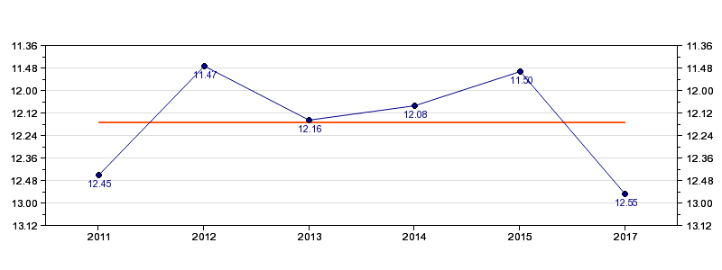 | Forrige tid | 12.55 (2017) |