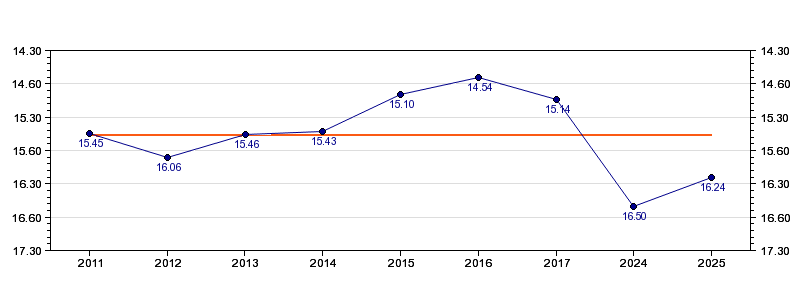Antall deltagelser9 (i perioden 2011 - 2025)