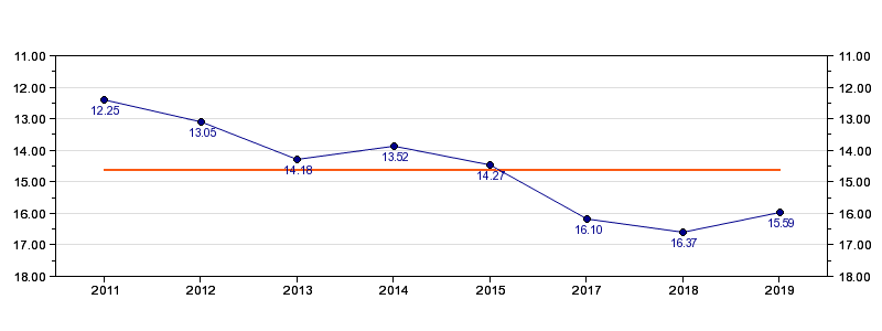 | Forrige tid | 15.59 (2019) |