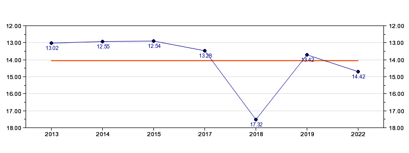 | Forrige tid | 14.42 (2022) |
