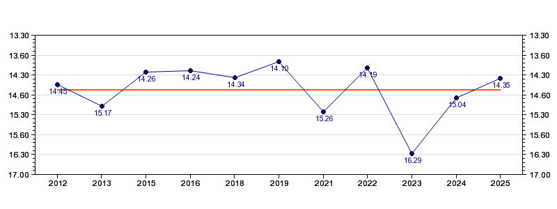 | 2025 | Kalkulator | 14:35 (1240 m/h) | 02:37 (1233 m/h, 99 %) | 07:06 (04:29, 1227 m/h, 98 %) | 12:37 (05:31, 1243 m/h, 100 %) | 14:35 (01:58, 1269 m/h, 102 %) |