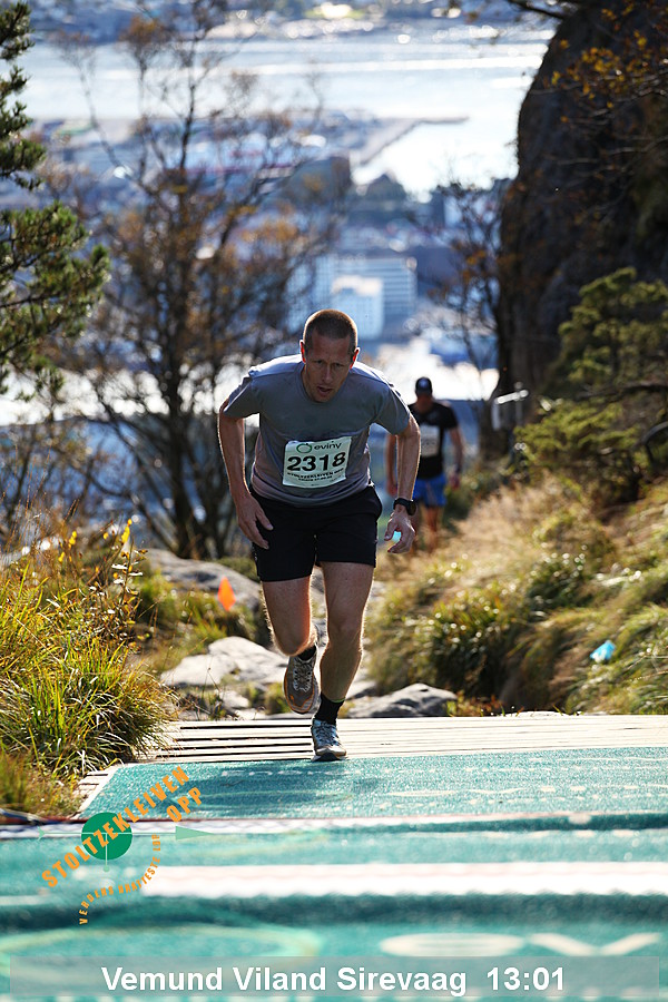 Da Thorbjørn Ludvigsen satte rekord på 7.54 i 2016 hadde han serien 95-99-95-115 og en gjennomsnittlig vertikal hastighet på 2286 meter/time. Kristin Størmer Steira hadde serien 107-96-95-107 da hun satte damerekord på 9:35 i 2013 med en gjennomsnittlig vertikal hastighet på 1884 meter/time. Til sammenligning hadde verdensrekordløpene på en vertikal kilometer (per 1/8/2014) hastighet på henholdsvis 1967 meter/time og 1630 meter/time - men da ble det altså løpt mer enn 3 ganger så langt.