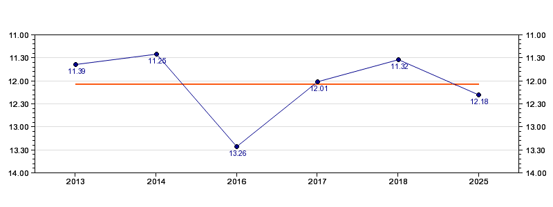 | Antall deltagelser | 6 (i perioden 2013 - 2025) |