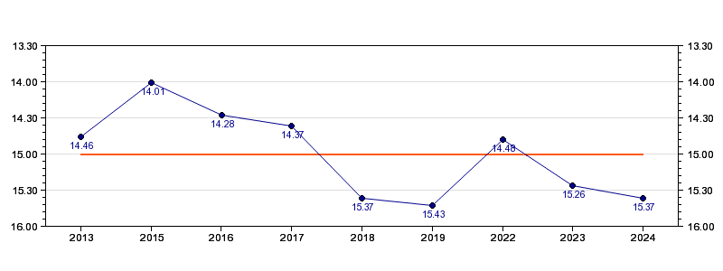 Antall deltagelser9 (i perioden 2013 - 2024)