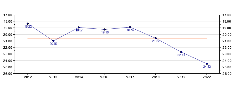 | Forrige tid | 24.32 (2022) |
