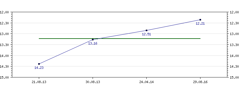 | 21.08.2013 | 14.23 | 30.08.2013 | 13.16 | 24.04.2014 | 12.51 | 29.08.2016 | 12.21 |