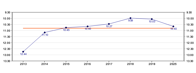 | Forrige tid | 10.40 (2025) |
