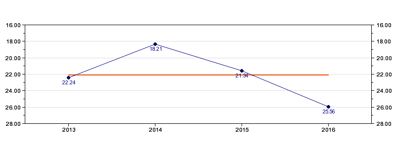 | Forrige tid | 25.56 (2016) |