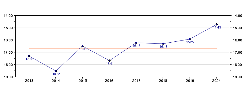Antall deltagelser8 (i perioden 2013 - 2024)