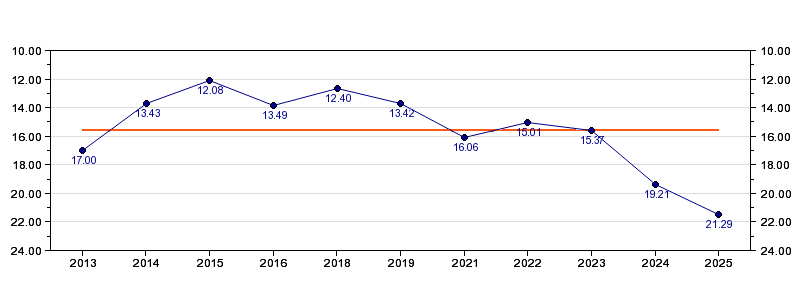| 2025 | Kalkulator | 21:29 (841 m/h) | 04:05 (790 m/h, 93 %) | 10:32 (06:27, 853 m/h, 101 %) | 19:09 (08:37, 795 m/h, 94 %) | 21:29 (02:20, 1069 m/h, 127 %) |