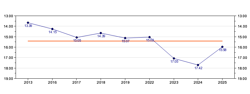 Antall deltagelser9 (i perioden 2013 - 2025)