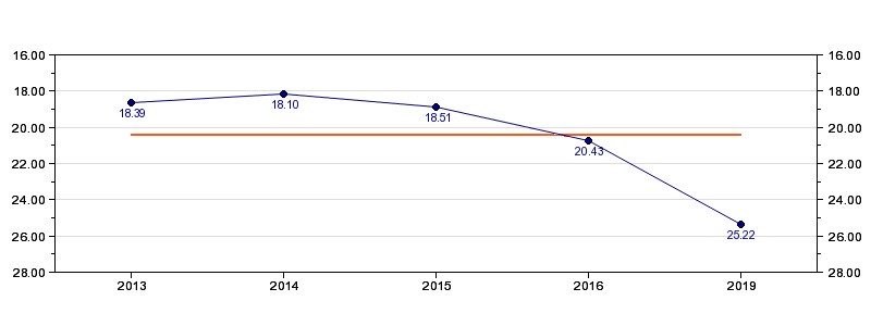 | Forrige tid | 25.22 (2019) |