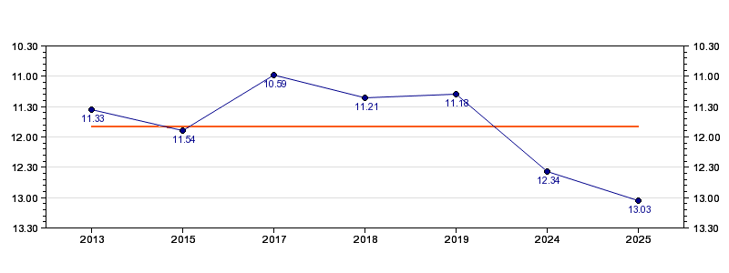 Antall deltagelser7 (i perioden 2013 - 2025)