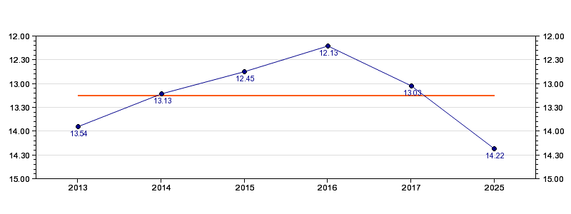 | Forrige tid | 14.22 (2025) |