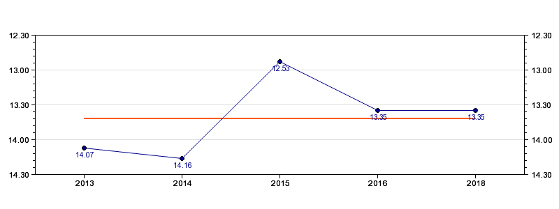 | Forrige tid | 13.35 (2018) |