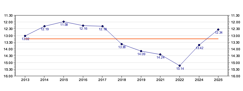 | Forrige tid | 12.34 (2025) |