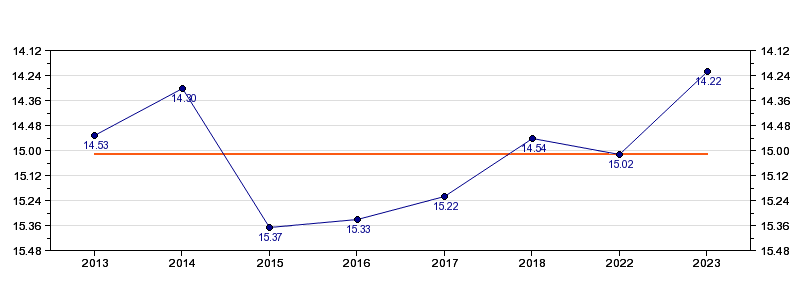 | Forrige tid | 14.22 (2023) |