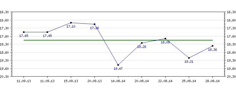 | 22.08.2014 | 18.09 | 25.08.2014 | 19.21 | 28.08.2014 | 18.36 |