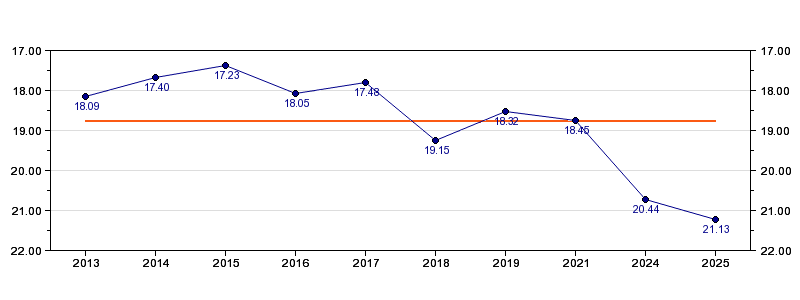Antall deltagelser10 (i perioden 2013 - 2025)