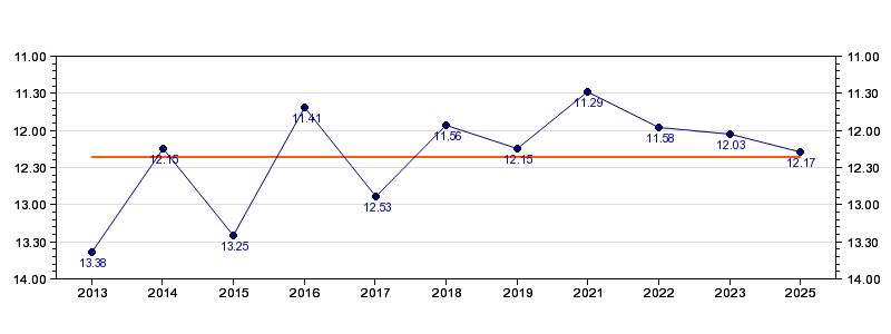 | Forrige tid | 12.17 (2025) |