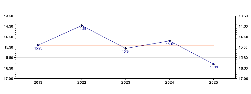 | Antall deltagelser | 5 (i perioden 2013 - 2025) |