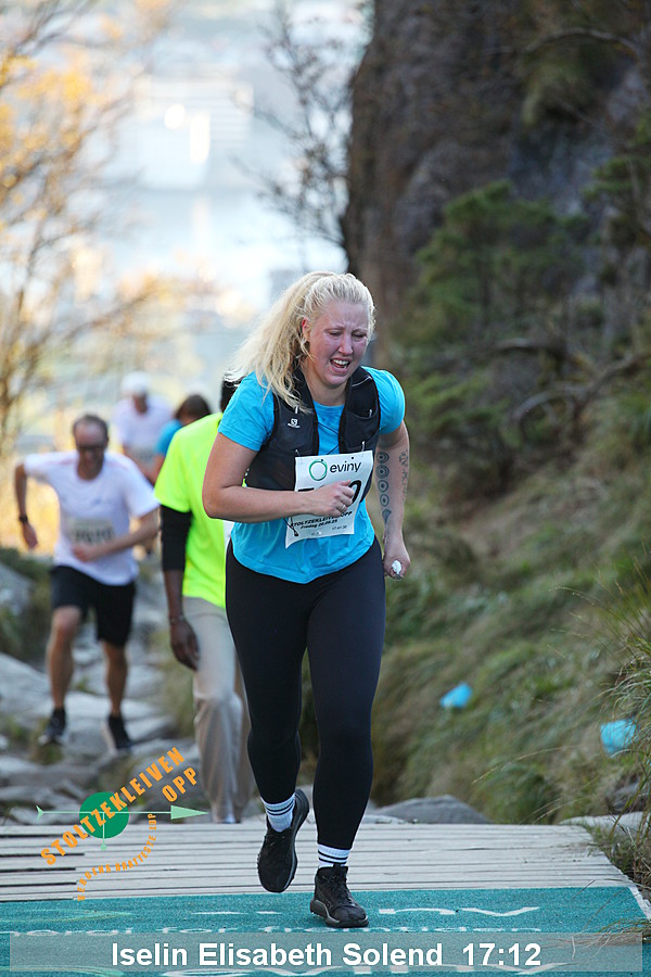 Da Thorbjørn Ludvigsen satte rekord på 7.54 i 2016 hadde han serien 95-99-95-115 og en gjennomsnittlig vertikal hastighet på 2286 meter/time. Kristin Størmer Steira hadde serien 107-96-95-107 da hun satte damerekord på 9:35 i 2013 med en gjennomsnittlig vertikal hastighet på 1884 meter/time. Til sammenligning hadde verdensrekordløpene på en vertikal kilometer (per 1/8/2014) hastighet på henholdsvis 1967 meter/time og 1630 meter/time - men da ble det altså løpt mer enn 3 ganger så langt.