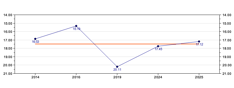 | Antall deltagelser | 5 (i perioden 2014 - 2025) |