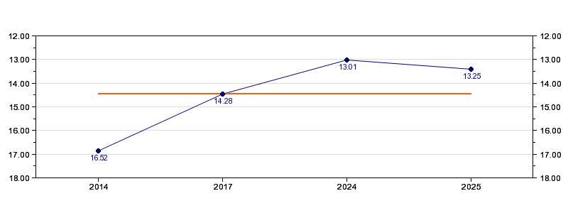 | Forrige tid | 13.25 (2025) |