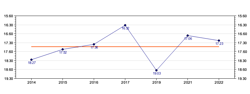 | Forrige tid | 17.23 (2022) |