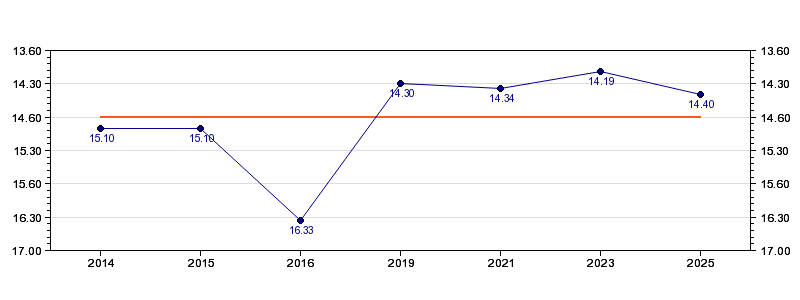 Antall deltagelser7 (i perioden 2014 - 2025)