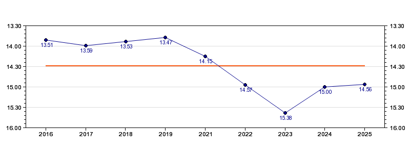 | Forrige tid | 14.56 (2025) |